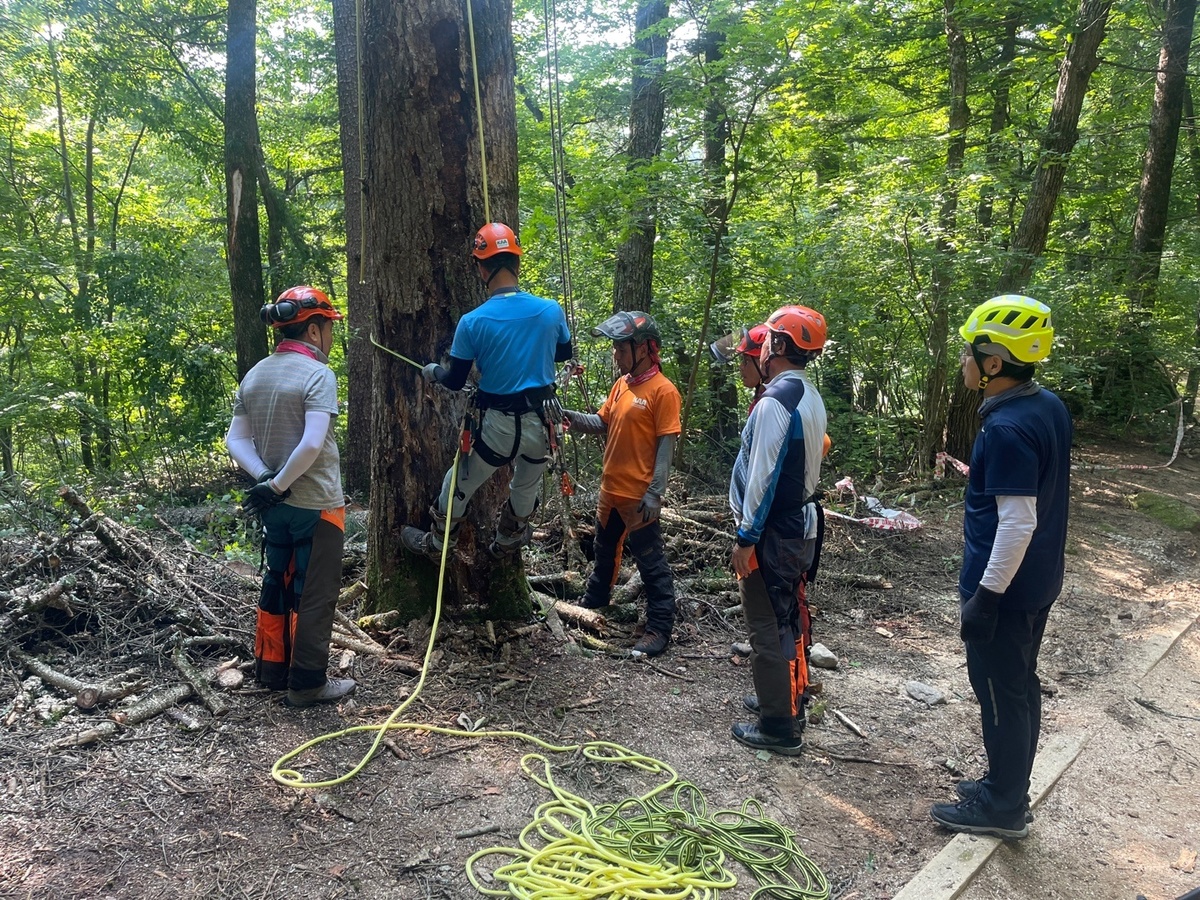 산림자원을 활용하여 트리클라이밍에 필요한 로프시설을 설치 운영할 수 있는 아보리스트 기초 및 심화 과정